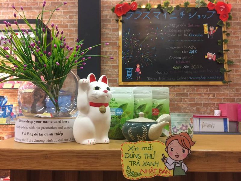 Bạn có thể ghé cửa hàng Plus Mainichi để dùng thử trà xanh Nhật Bản. Từ ngày 19/06 đến 19/07/2017, cửa hàng có chương trình khuyến mãi giảm 10% cho tất cả các sản phẩm của Bona Matcha và dụng cụ pha trà (ấm pha trà, chổi đánh trà...). (Ảnh: Plus Mainichi)