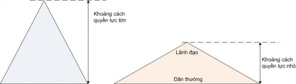 Còn quốc gia có điểm PD thấp hơn như Nhật Bản không nhấn mạnh vào sự khác biệt giữa người và người về vị trí xã hội, về quyền lực, hay về của cải. Bình đẳng được coi như một mục đích chung của cả công ty. Một nhân viên có thể thẳng thắn nói suy nghĩ của mình với sếp hay từ đáy tháp quyền lực leo lên đỉnh là chuyện bình thường.